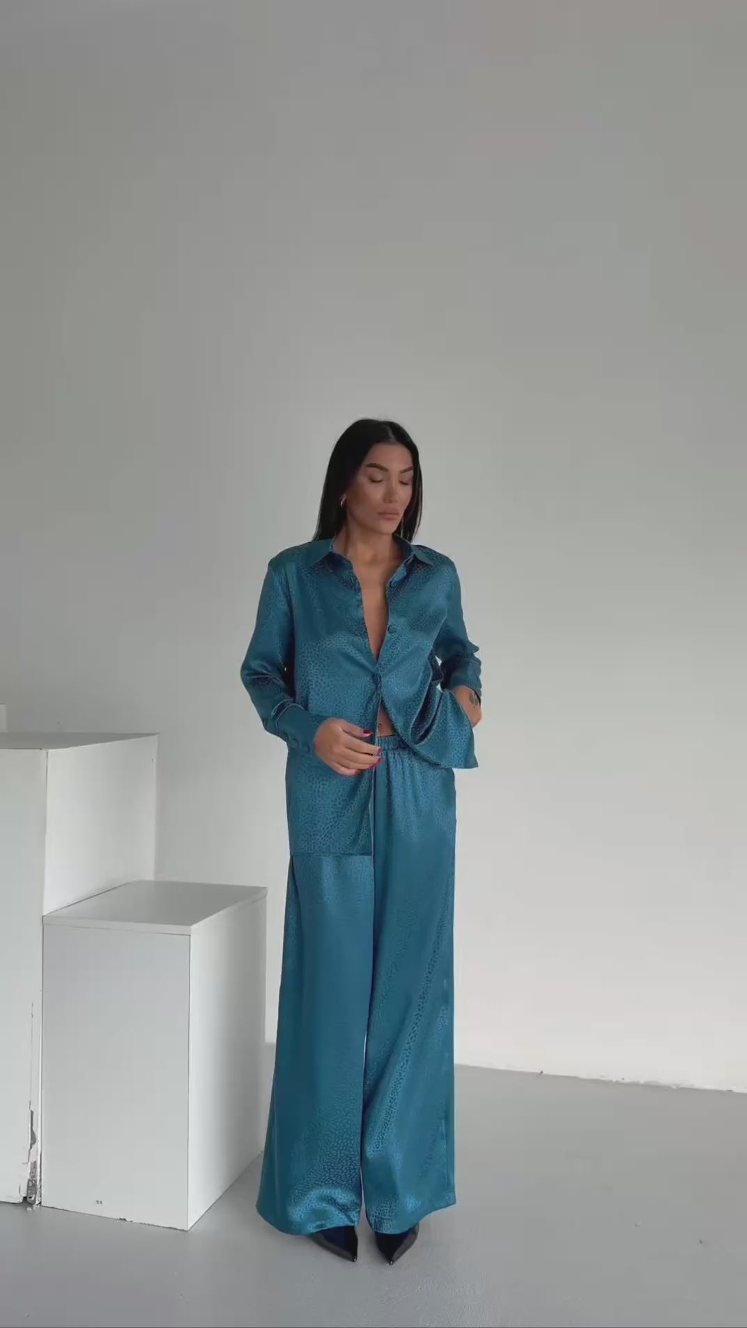 Smooth and lightweight with a gently structured drape, this set feels luxurious on the skin while remaining breathable and comfortable. Designed with a classic button-up shirt and elasticated waist trousers, it’s ideal for elevated lounging, stylish evenings at home, or effortless luxury sleepwear.